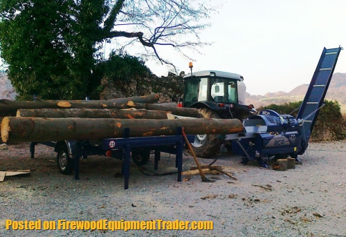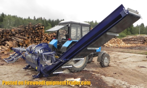 These Processors are free standing and self supporting and require a minimum 35 PTO HP to run them. To mount and transport the processor you will need a tractor of 55+ Horsepower. These processors split logs ranging from 8” to 20” in length. A 4 way wedge is standard. 6 & 8 way wedged are optional.